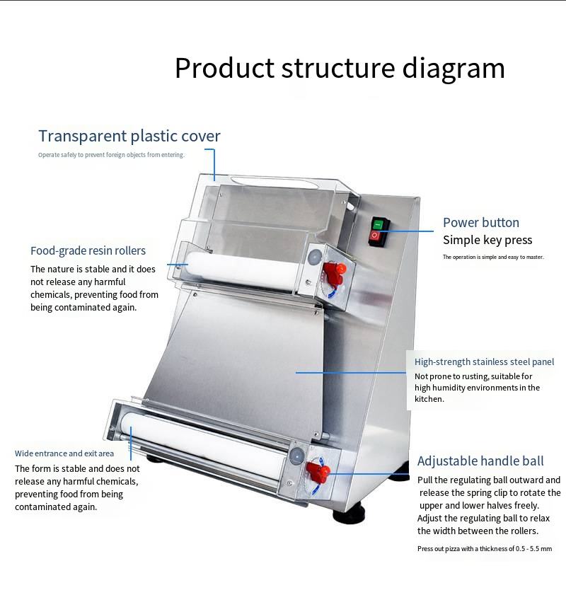 Laminadora vertical de masa de hojaldre de acero inoxidable para mesa, prensa para panadería