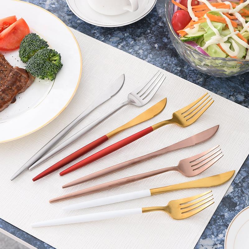 Vajilla de acero inoxidable para hotel, conjunto de 4 piezas de alta gama, color personalizado portugués grueso, mango redondo, ins style
