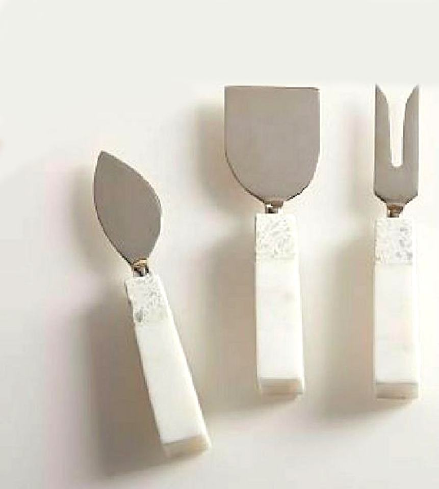 Vajilla de acero inoxidable hecha a mano con mango de resina blanca, juego de herramientas para queso, de lujo, plateado, real, hecho a mano