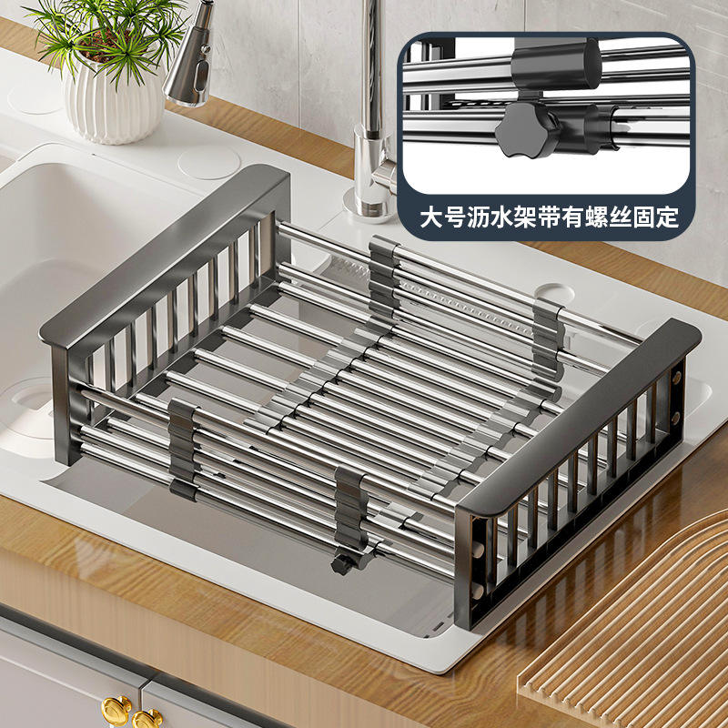 Escurridor de platos telescópico de acero inoxidable, cuadrado, ajustable, para verduras y frutas