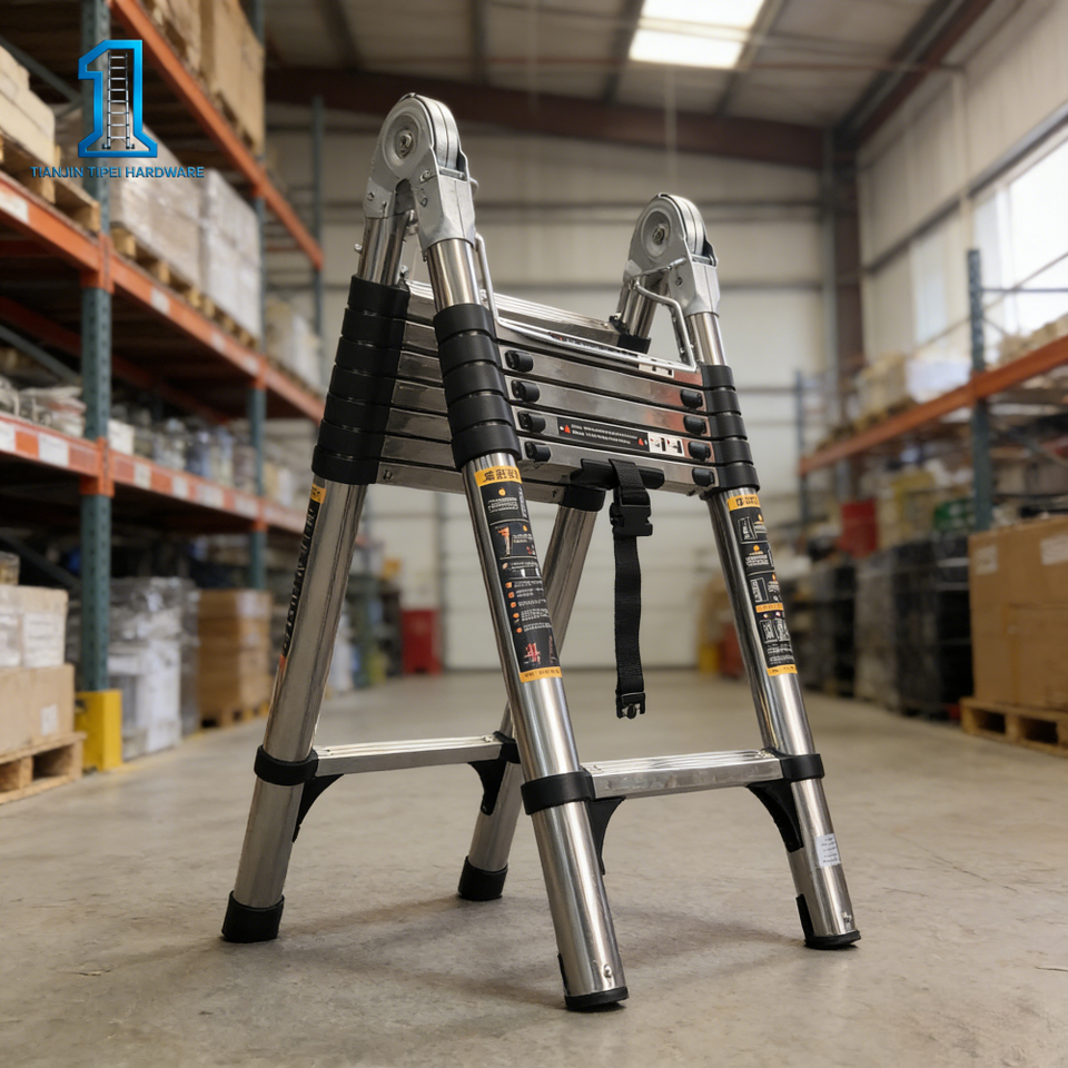 Escalera Telescópica de Acero Inoxidable de 2.5+2.5 Metros, Plegable, Multifuncional, Reforzada, Antideslizante