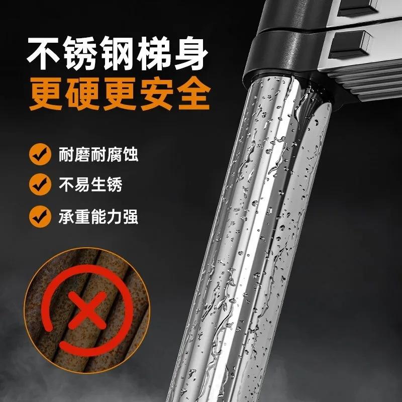 Escalera Telescópica de Acero Inoxidable con Ganchos, 10-12 Peldaños, Grado de Ingeniería, Escalera Plegable Retráctil