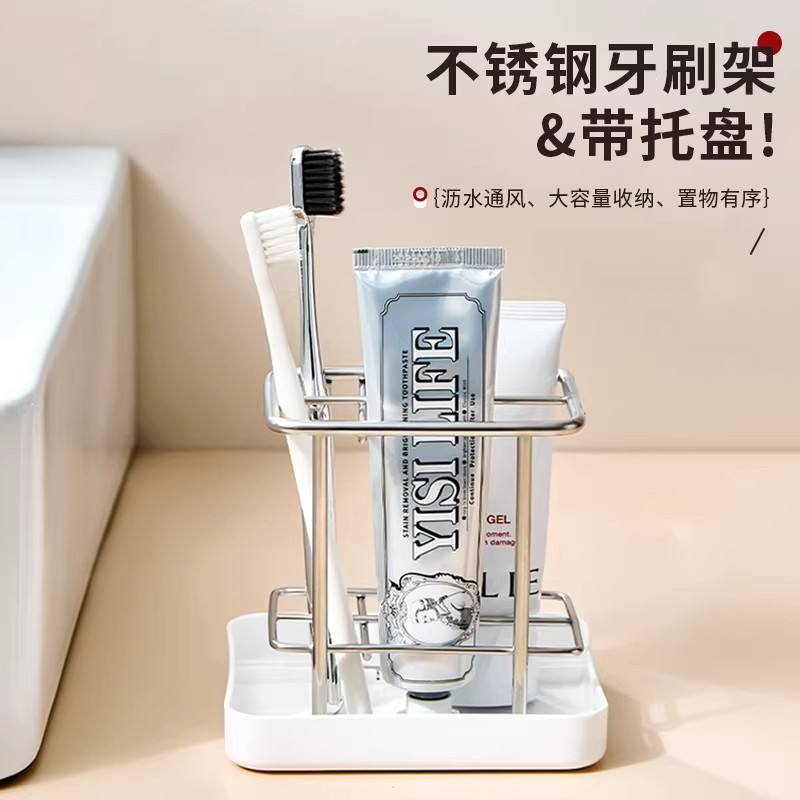 Soporte para cepillos de dientes de acero inoxidable con bandeja rectangular, duradero, para almacenamiento en encimera de baño