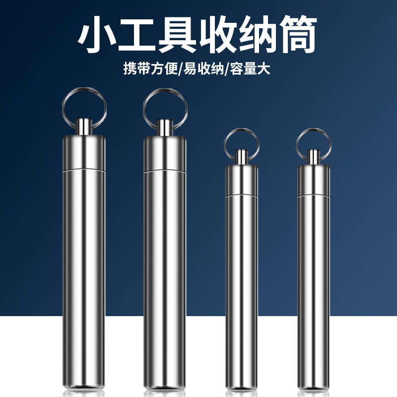 Porta Palillos de Acero Inoxidable, Tubo de Almacenamiento Metálico Pequeño, Herramienta Portátil para Limpieza de Oídos con Anillo para Llavero