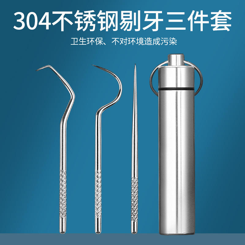 Stainless Steel Toothpick Set 3 Piece Portable Dental Cleaning Kit For General Use