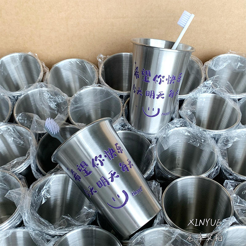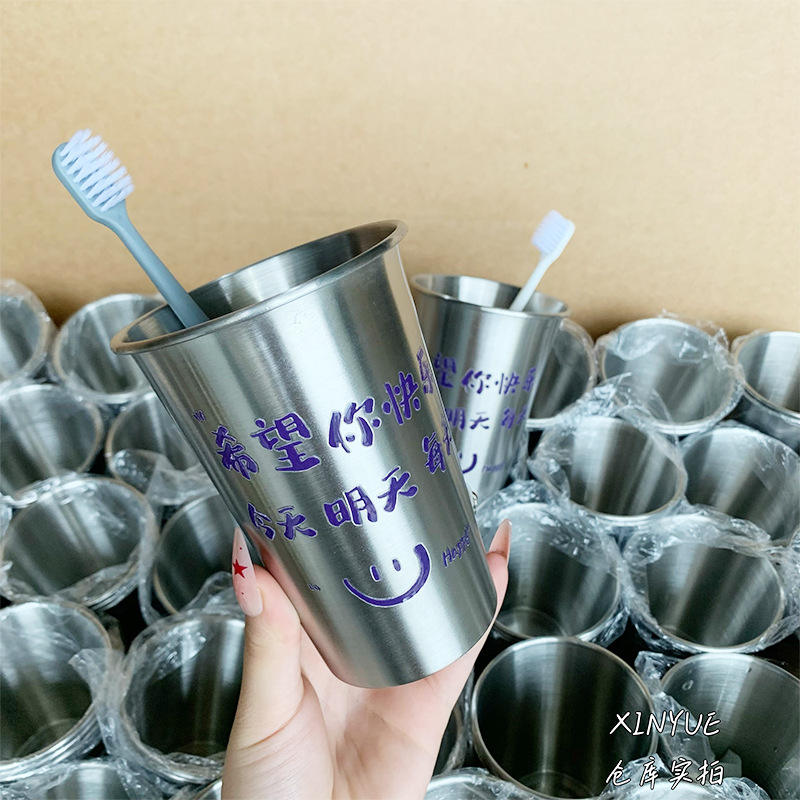 Vaso de acero inoxidable con diseño de texto, taza portátil para uso diario y regalos