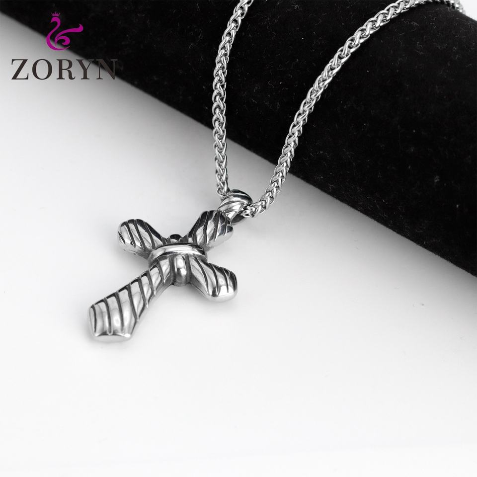 Colgante de Cruz de Cuerda Trenzada de Acero Inoxidable, Joyería Religiosa Cristiana Gótica Punk Vintage de Acero de Titanio para Hombres y Mujeres