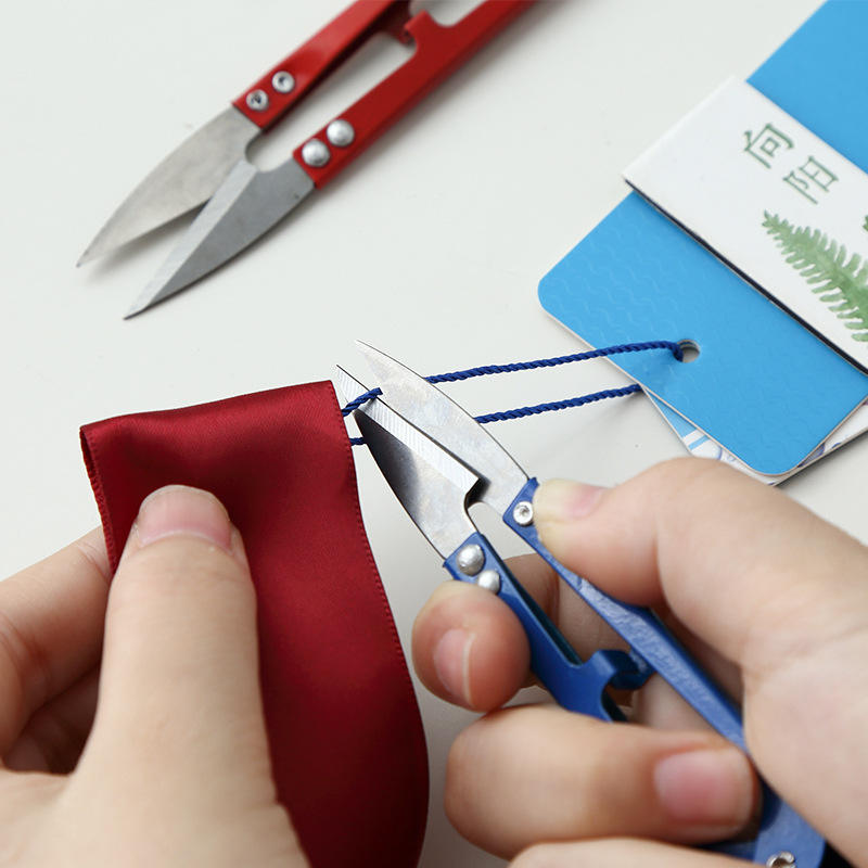 Tijeras en forma de U de acero inoxidable para bordado de punto de cruz, hilo de coser, línea de pesca, recorte, uso doméstico, bricolaje, color rojo