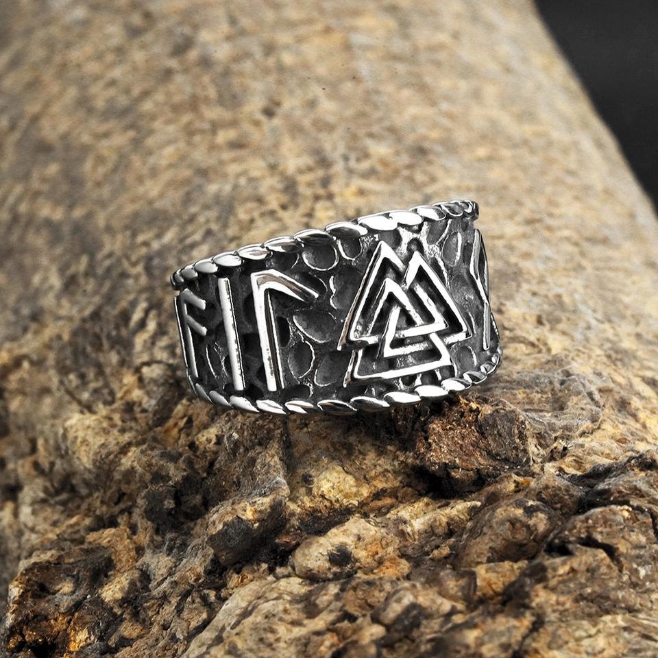 Anillo Vikingo de Acero Inoxidable con Runas Triangulares, Estilo Hip Hop Geométrico, Joyería Masculina para Regalo