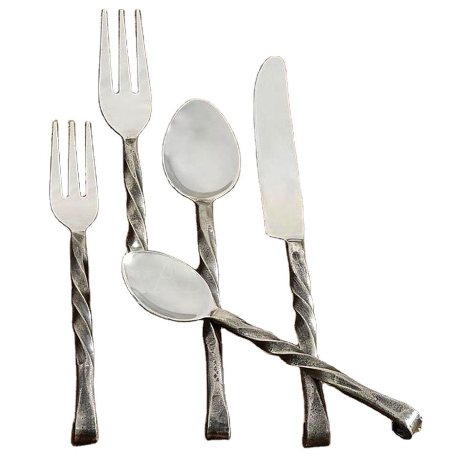Juego de cubiertos con mango trenzado rústico Vintage de acero inoxidable Juego de cuchillos con tenedor y cuchara de acero inoxidable Juego de cubiertos de alta calidad