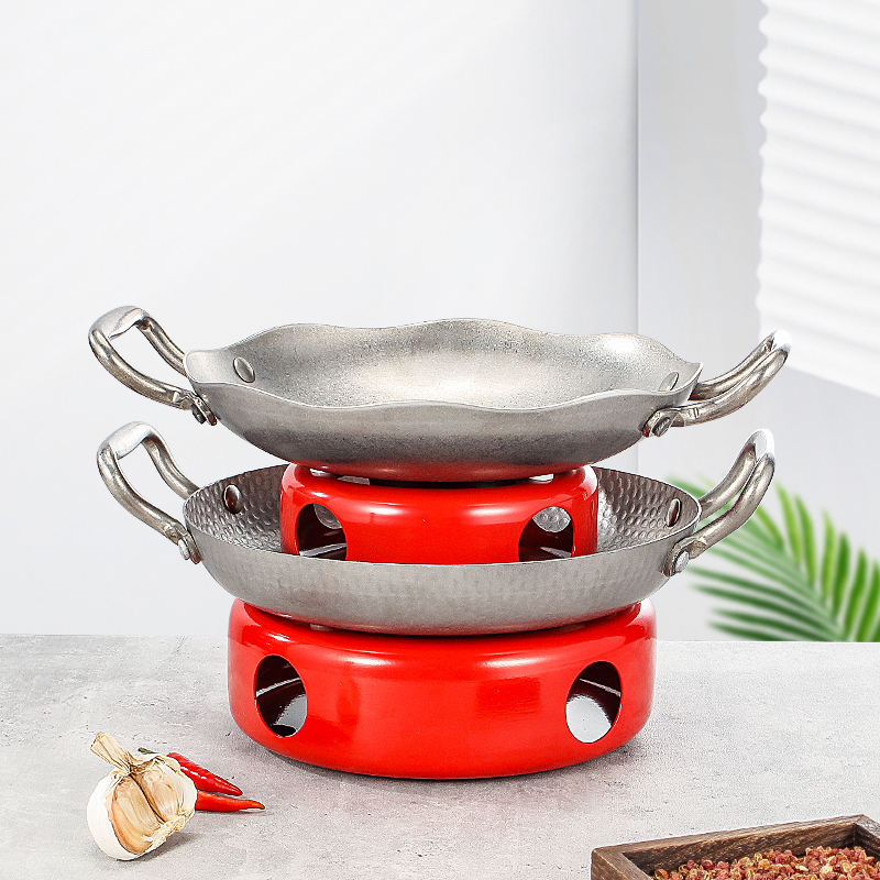 Olla de arroz de marisco Vintage de acero inoxidable, Paella para cocinar en casa, platos para aperitivos de Picnic, utensilios de cocina, cacerola, ollas secas con asa