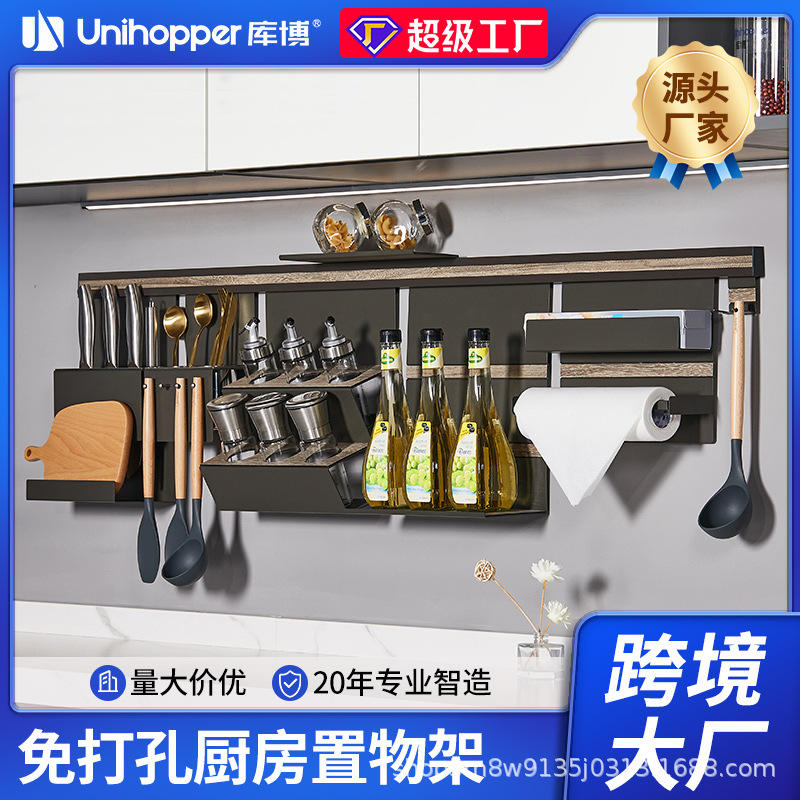 Estante de Almacenamiento de Cocina de Acero Inoxidable para Montar en la Pared, Color Café, Sin Necesidad de Perforación, Diseño Minimalista