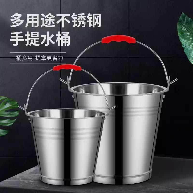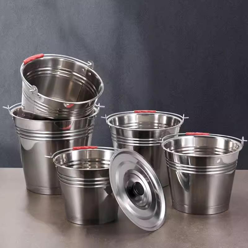 Cubo de Agua de Acero Inoxidable, Redondo, Portátil, para Uso Doméstico, Engrosado, No Magnético
