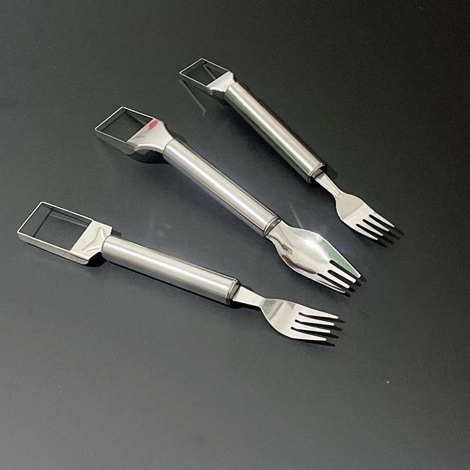 Juego de 3 Cortadores de Sandía de Acero Inoxidable, Tenedor de Frutas de Doble Cabeza, Apto para Lavavajillas, Utensilio de Cocina