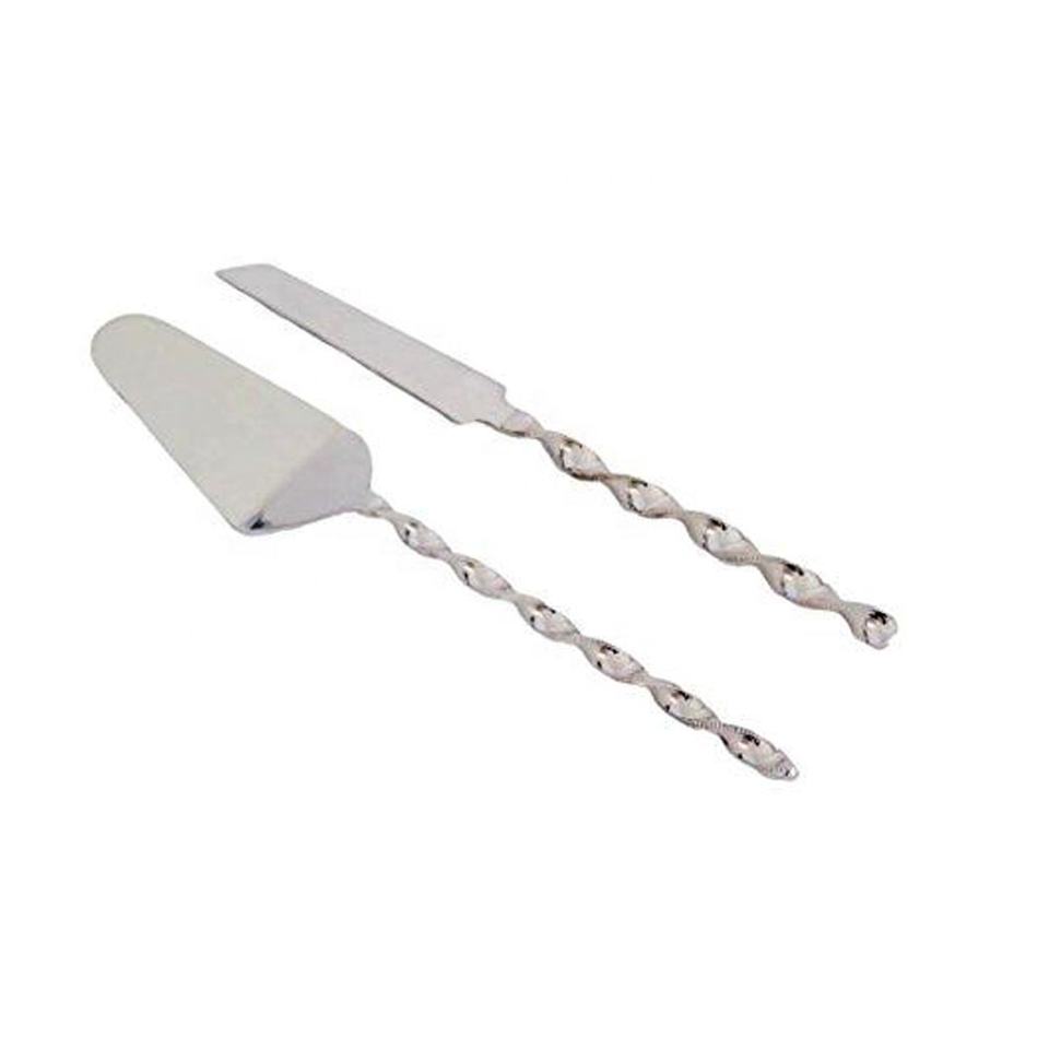 Cuchillo y cortador de pastel de boda de acero inoxidable, mango hecho a mano brillante pulido, juego de servicio para pastel de boda