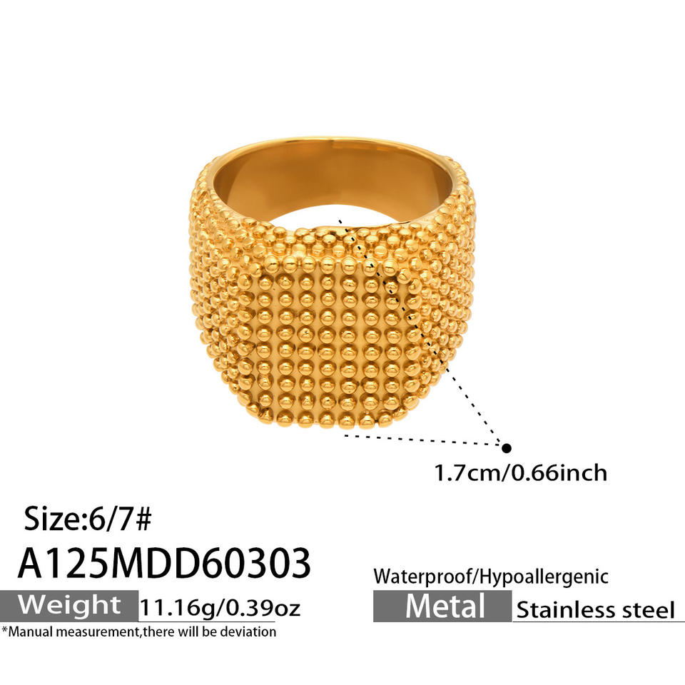 Anillo de Lujo Ligero con Patrón de Grano de Trigo en Acero Inoxidable para Mujer, Banda Ancha Cuadrada Vintage, Venta al por Mayor, Regalo de Compromiso y Boda