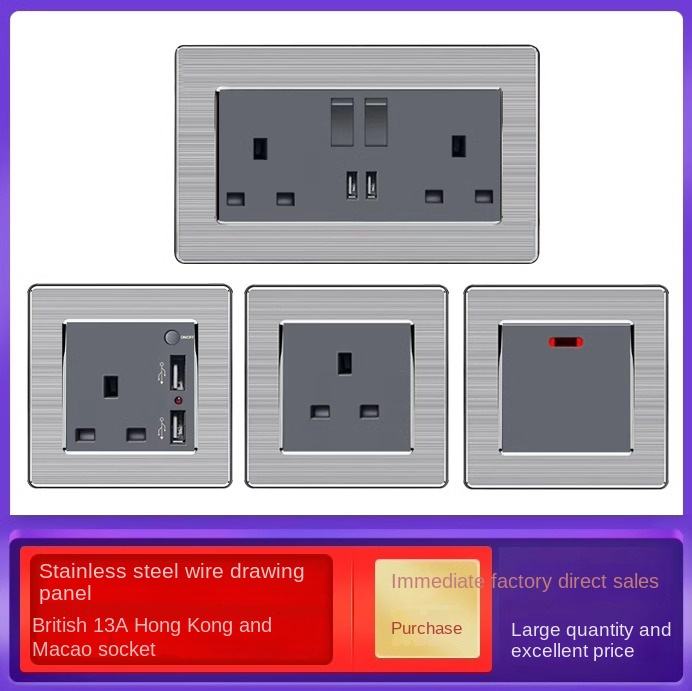 Trefilado de acero inoxidable Enchufe eléctrico de 3 pines estándar británico 13A Enchufe multipared UK