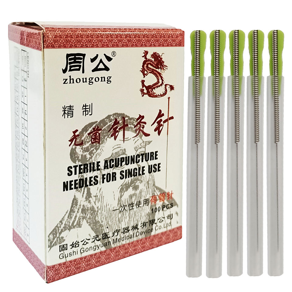 Acero inoxidable sin bucle 100 piezas Agujas de acupuntura estériles de punción seca con tubo guía