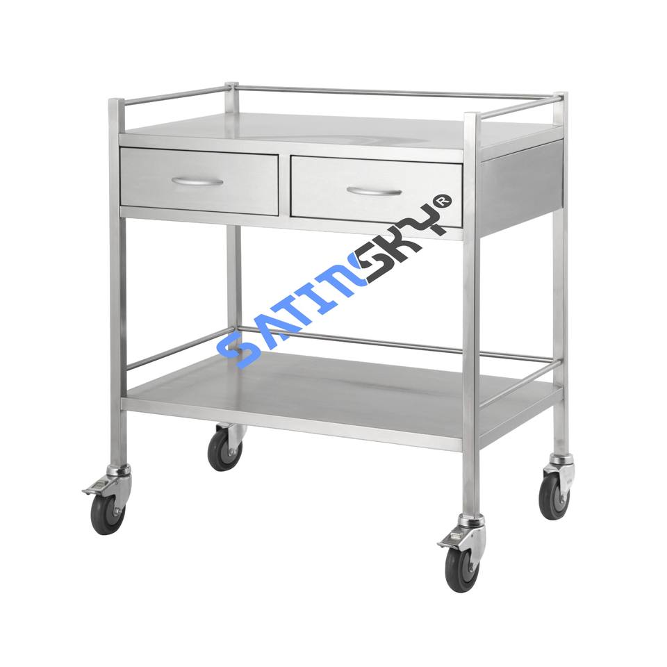 Carro de acero inoxidable de dos cajones de lado a lado Instrumentos médicos de alto grado de acero inoxidable 304