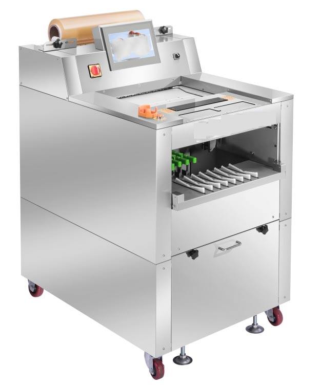 Envoltura de película elástica de mantenimiento fresco semiautomática Vertical de acero inoxidable supermercado centro comercial verduras frutas alimentos frescos pan huevos