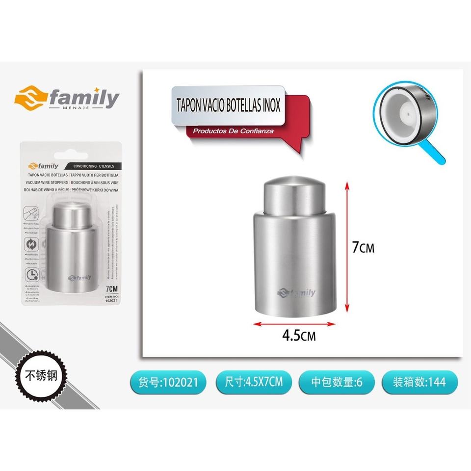Tapón de vacío de acero inoxidable para botellas de vino para cocinar y conservar