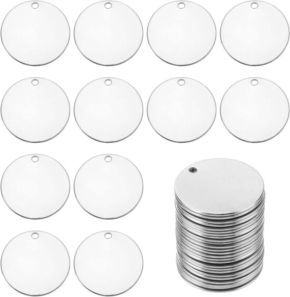 Discos de Metal Redondos Plateados para Estampado, Etiquetas de Acero Inoxidable para Estampado con Orificio (25 mm), Disco Circular Perforado