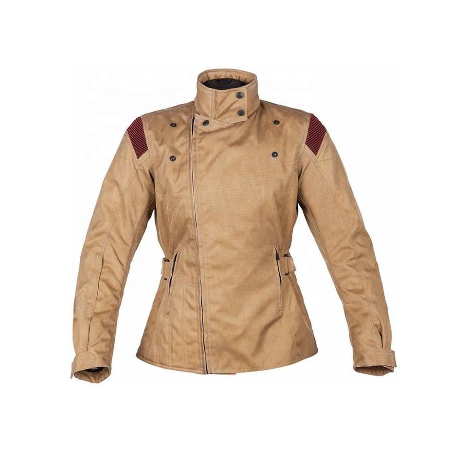 Cuello alto Color personalizado de alta calidad Mujeres Transpirable Todo clima Motocicleta Impermeable A prueba de viento Marrón-Chaquetas textiles Cordura