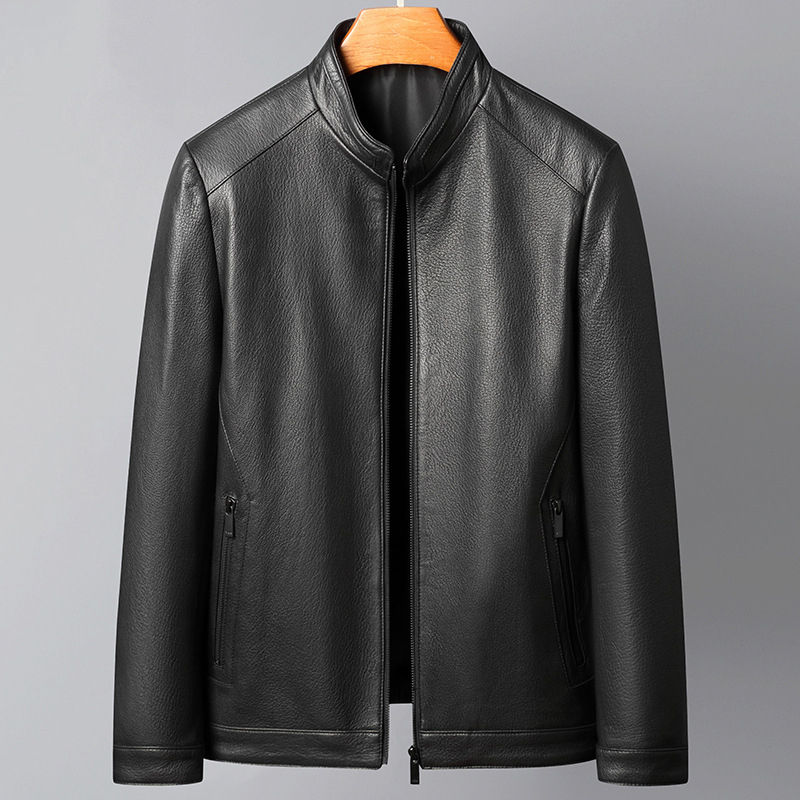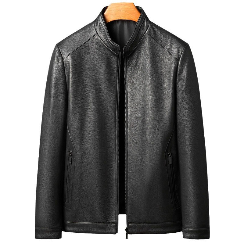 Chaqueta de cuero de motocicleta de color sólido con cuello levantado, chaqueta de cuero grande para hombre, chaqueta a la venta