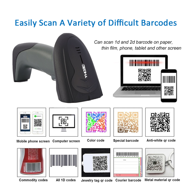 Escáner de Código de Barras 1D 2D Fijo, Lector de Códigos QR Micro, PDF417 y Aztec, USB, para Pagos Móviles, Lector de Código de Barras Portátil