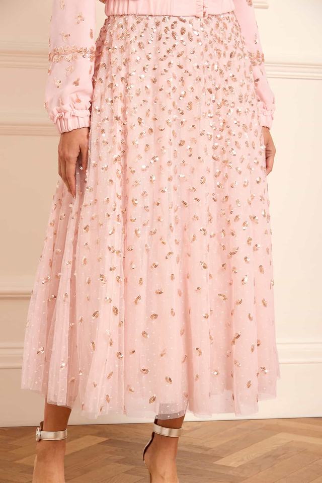 Maxi vestido de noche acampanado con cuello alto, gasa Pastel con bordado a máquina y volantes para bodas, fiestas de graduación