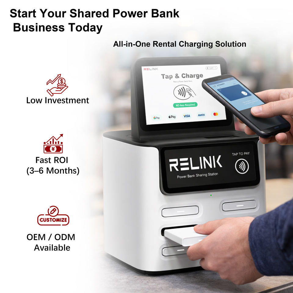 Banco de Energía Compartido Estándar de 5000mAh para Estaciones de Alquiler de 6/12/24/48 Ranuras con Cables Micro USB Tipo-C Integrados