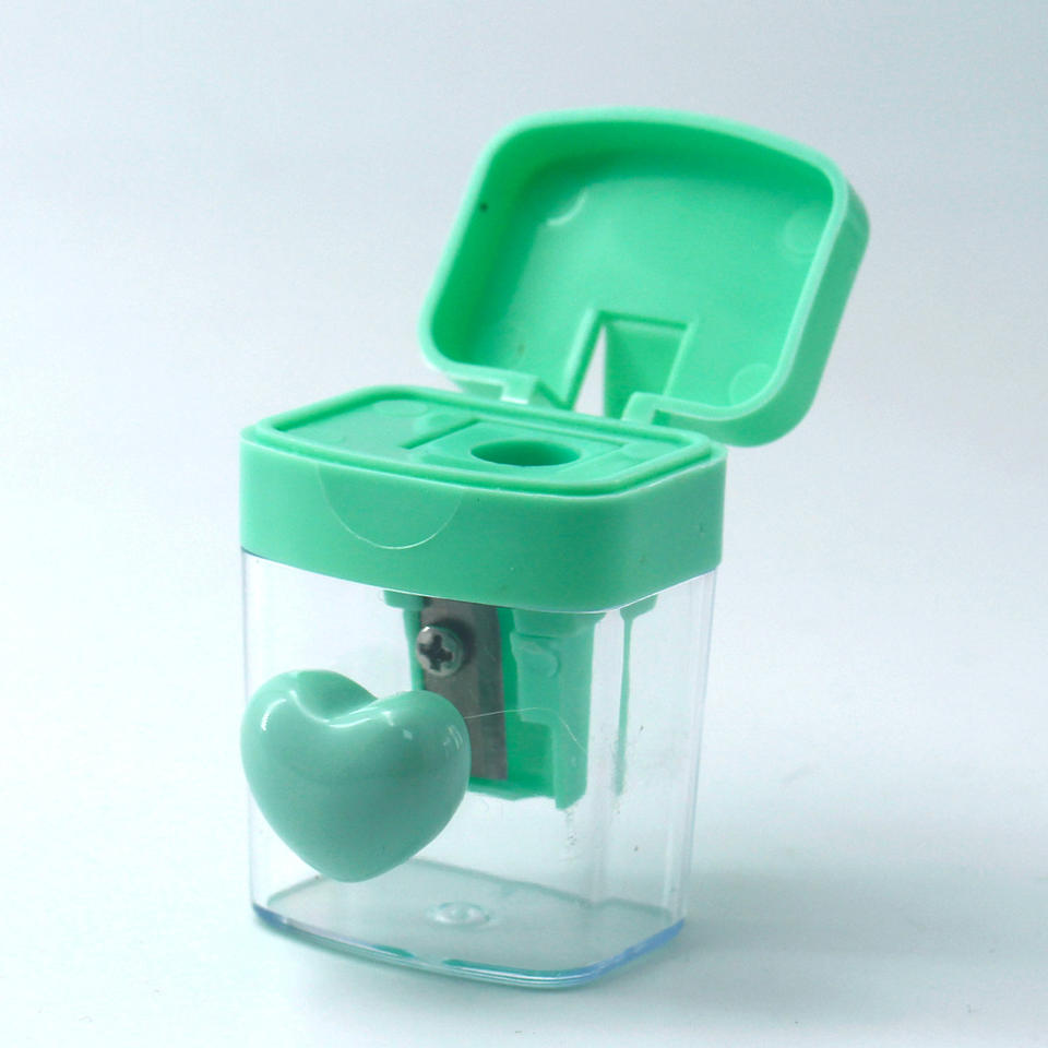 Sacapuntas de Lápiz con Cubierta de Cinta Transparente en Espiral con Forma de Corazón de Cuatro Colores de Dibujos Animados Estándar para Estudiantes de Primaria