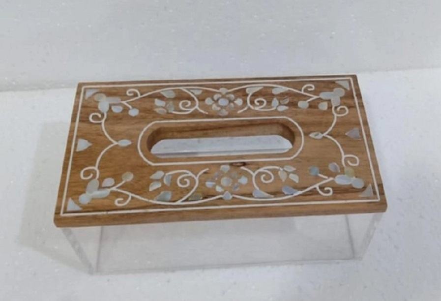 Dispensador de pañuelos de papel pulido clásico acrílico transparente estándar con tapa de madera para Hotel restaurante comedor uso embalaje de cartón