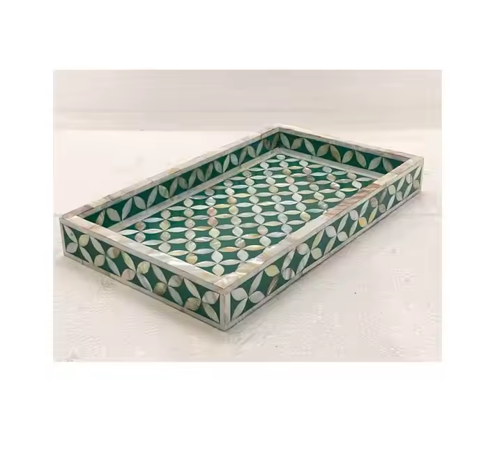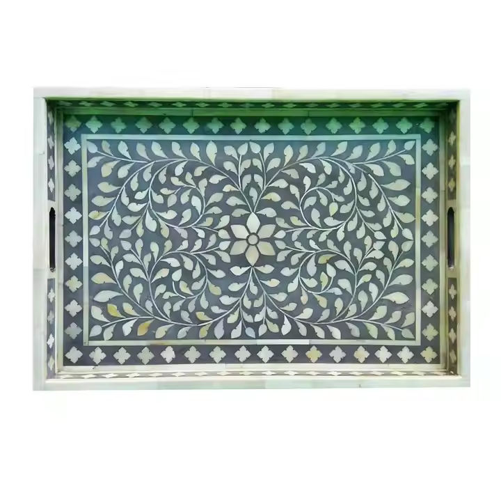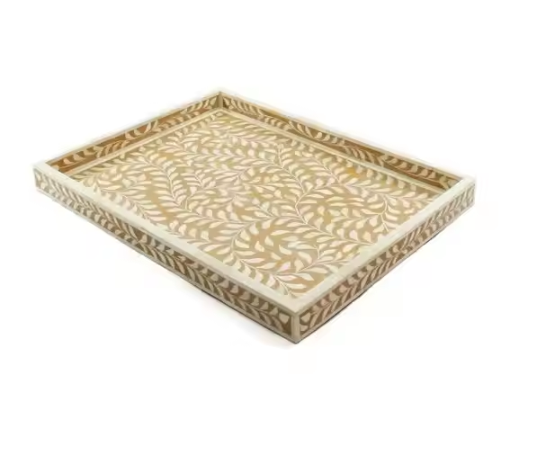 Bandeja con incrustaciones de hueso de diseño estándar Bandeja para servir con incrustaciones de hueso de lujo y alta calidad para suministros de restaurante y hotel de artesanía de media luna