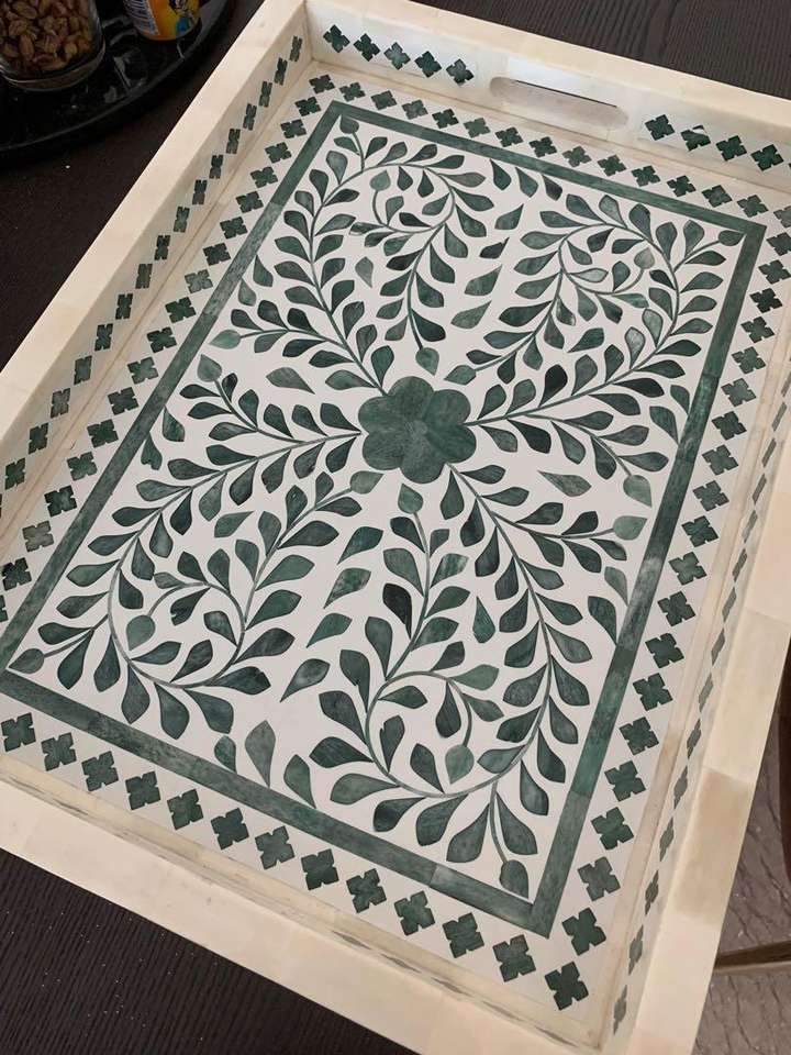 Diseño estándar MOP Color Resina y bandejas de madera para servir Bandejas decorativas elegantes y mejores Ecológico y sostenible en la India