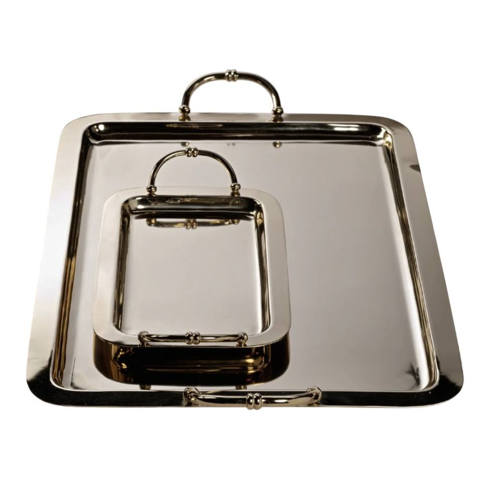 Bandeja de Servicio Rectangular de Metal Plateado con Asas, Diseño Estándar, Bandeja de Acero Inoxidable para Alimentos, para Hogar, Hotel, Restaurante