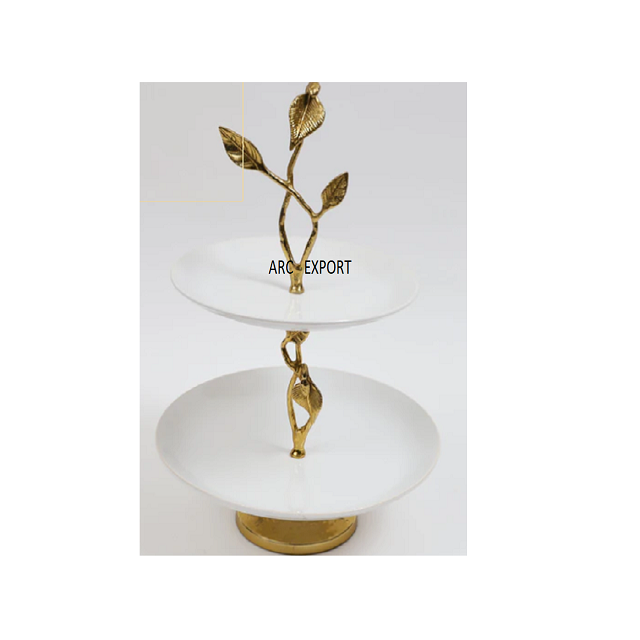 Soporte de pastel de cerámica blanco y dorado de diseño estándar para bodas y decoración del hogar soporte de pastel y platos al precio más bajo