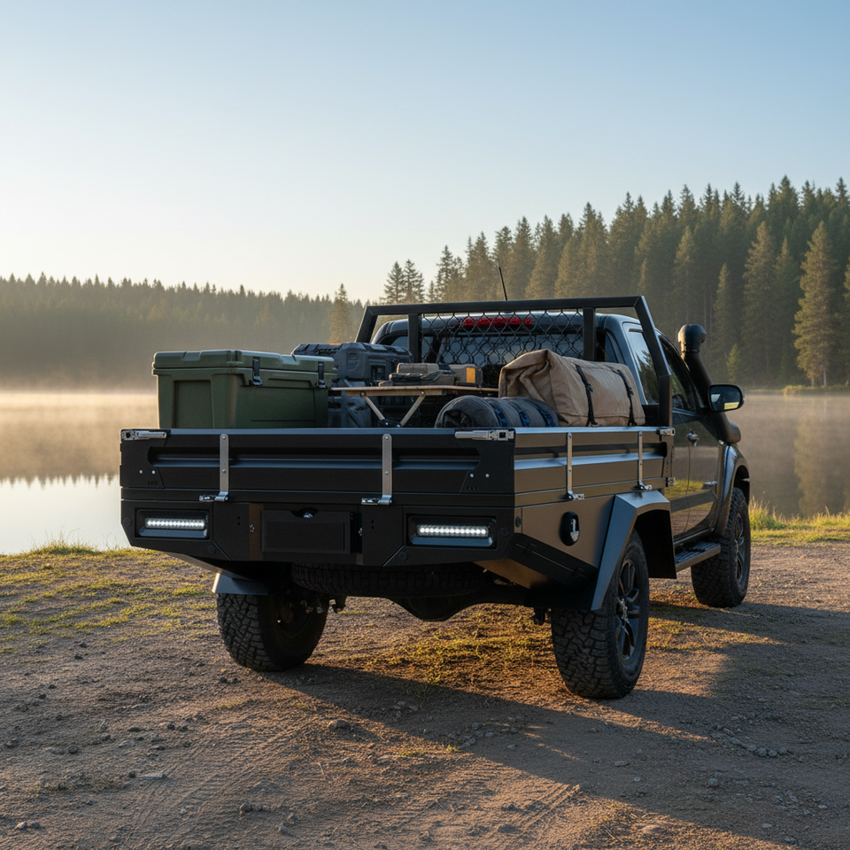 Plataforma Estándar para Camioneta de Cabina Extra para Hilux, Ranger, Dmax, Bt50 con Estribos Laterales Reforzados y Puerta Trasera Reforzada
