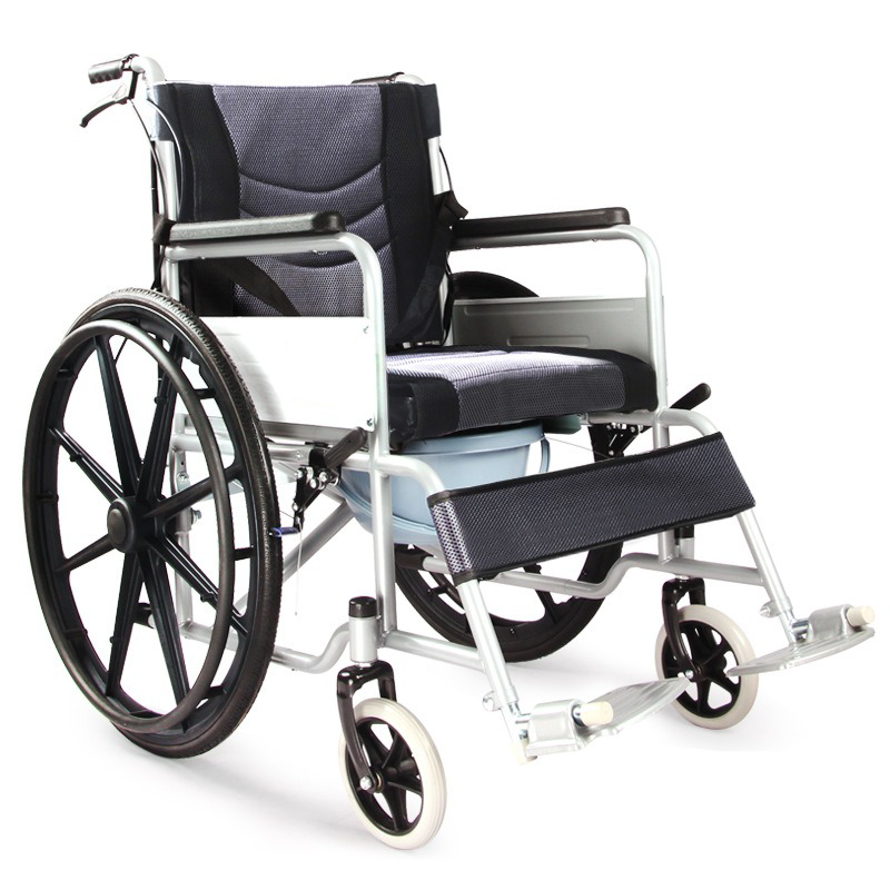 Orinal de acero plegable con rueda commode, Silla de ruedas manual plegable con inodoros, Económica