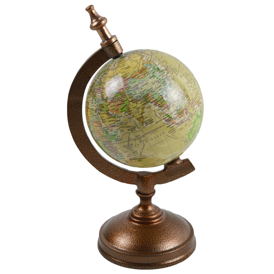 Globo Terráqueo Estándar para Interiores, Diseño con Acabado Rústico, Globo con Mapa del Mundo de Diseño, Globo Decorativo para Oficina