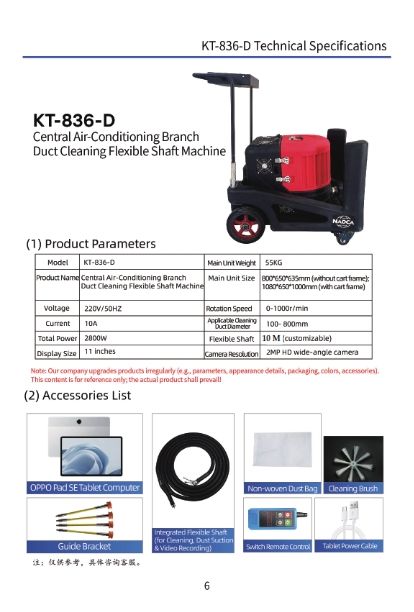 Máquina compacta de limpieza de conductos de aire con cepillo de enrutamiento, aspiradora y cámara
