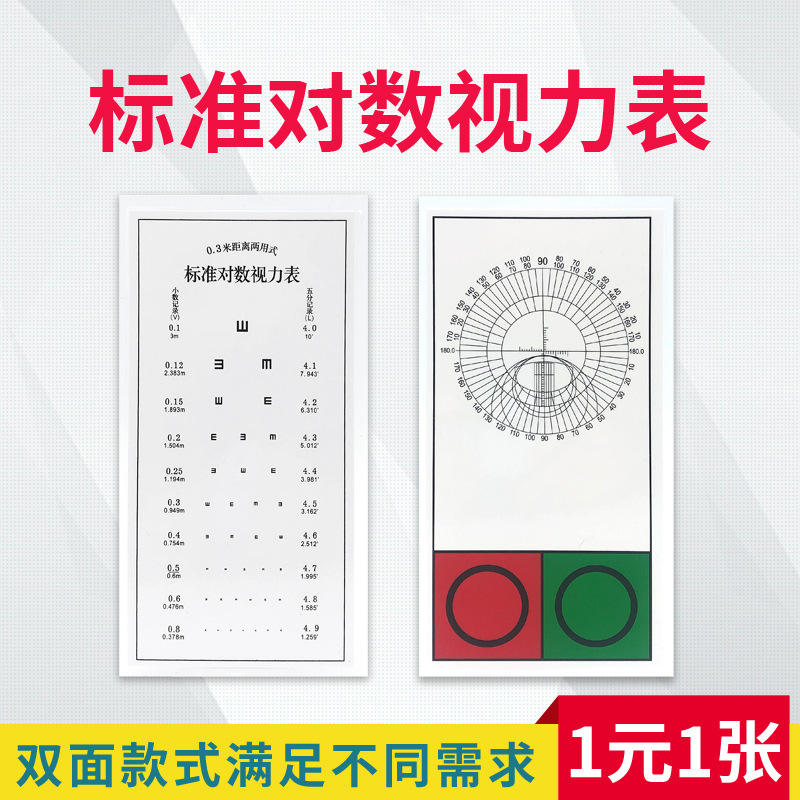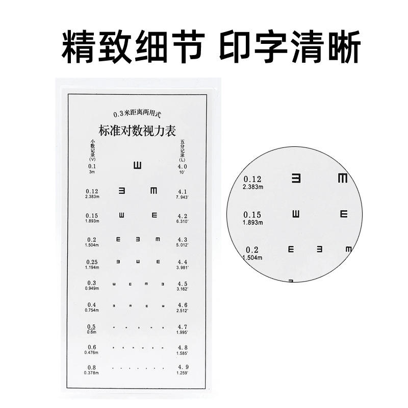 Tabla optométrica logarítmica estándar de 0.3m de distancia, de doble uso, con película plástica, tarjeta de prueba de visión cercana para estudio.