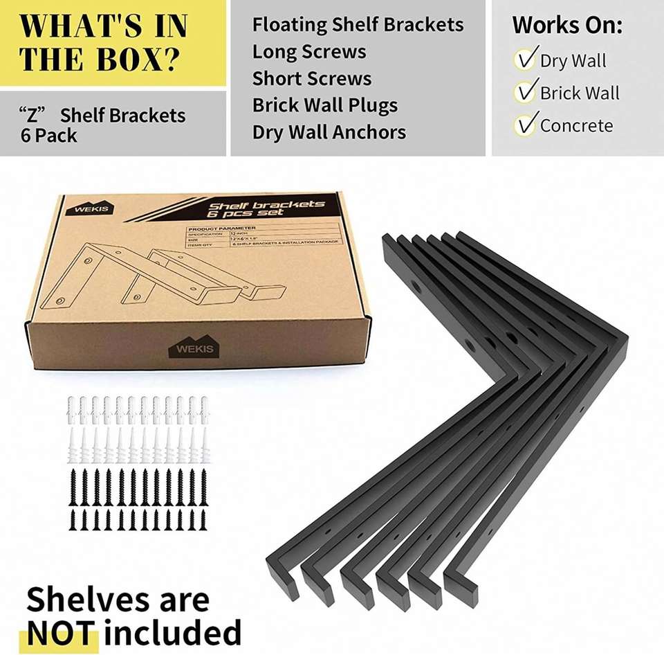 Soportes de Acero Sólido Ocultos Estándar OEM ODM para Montaje en Pared, Soportes Flotantes para Persianas con Recubrimiento de Polvo Negro, Capacidad de 75 lb