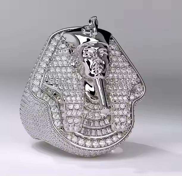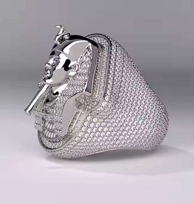 Anillo Hip Hop para Hombre con Baño de Rodio de Calidad Estándar y Moissanita Creada en Laboratorio para Exportación Mundial
