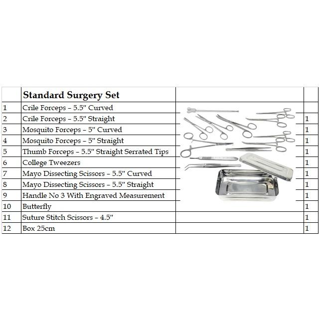 Juego de Instrumentos Quirúrgicos Manuales Estándar de Acero