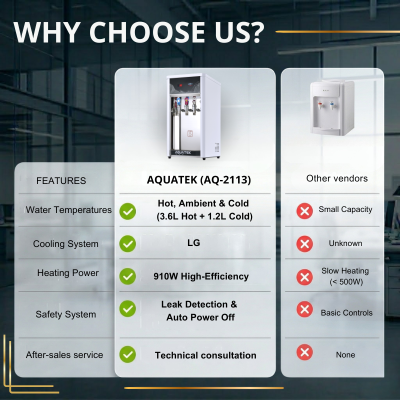 Dispensador de Agua de Alta Capacidad para Encimera Aquatek AQ-2113 | 3 Temperaturas (Caliente/Frío/Ambiente) | Calentamiento Rápido de 910W - MIT con RO (AQ-50-1)