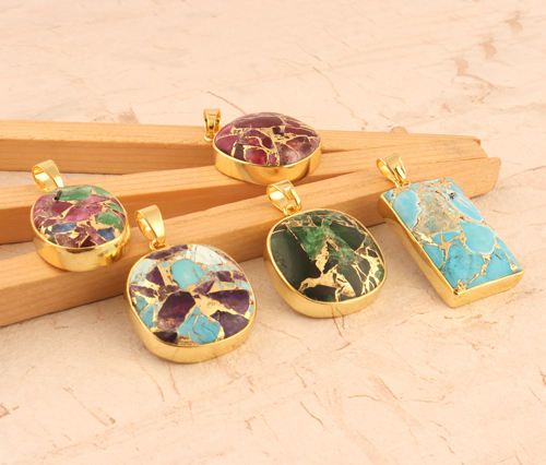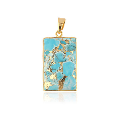 Colgante de cobre chapado en oro turquesa con estilo, joyería hecha a mano