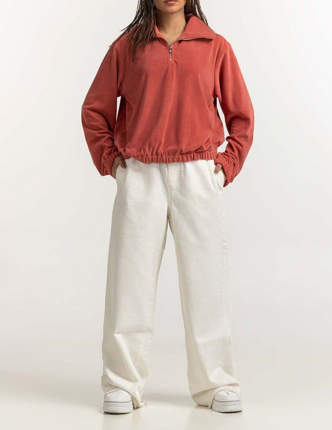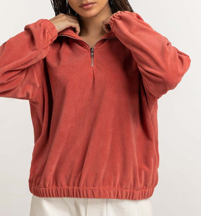 Sudadera transpirable hecha a medida con cuello de pie y media cremallera para mujer, sudadera personalizable para mujer