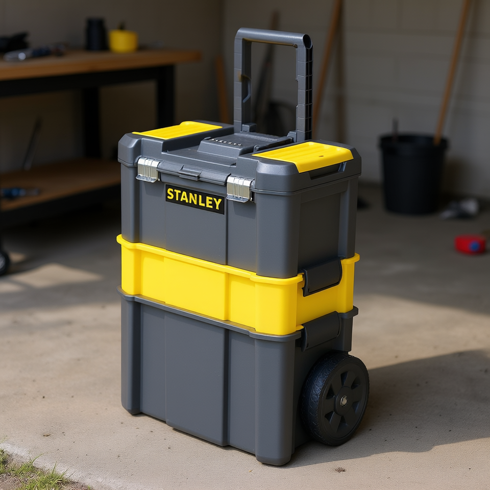 Caja de herramientas Stanley Essential 3 en 1 con ruedas y asa para almacenamiento y transporte