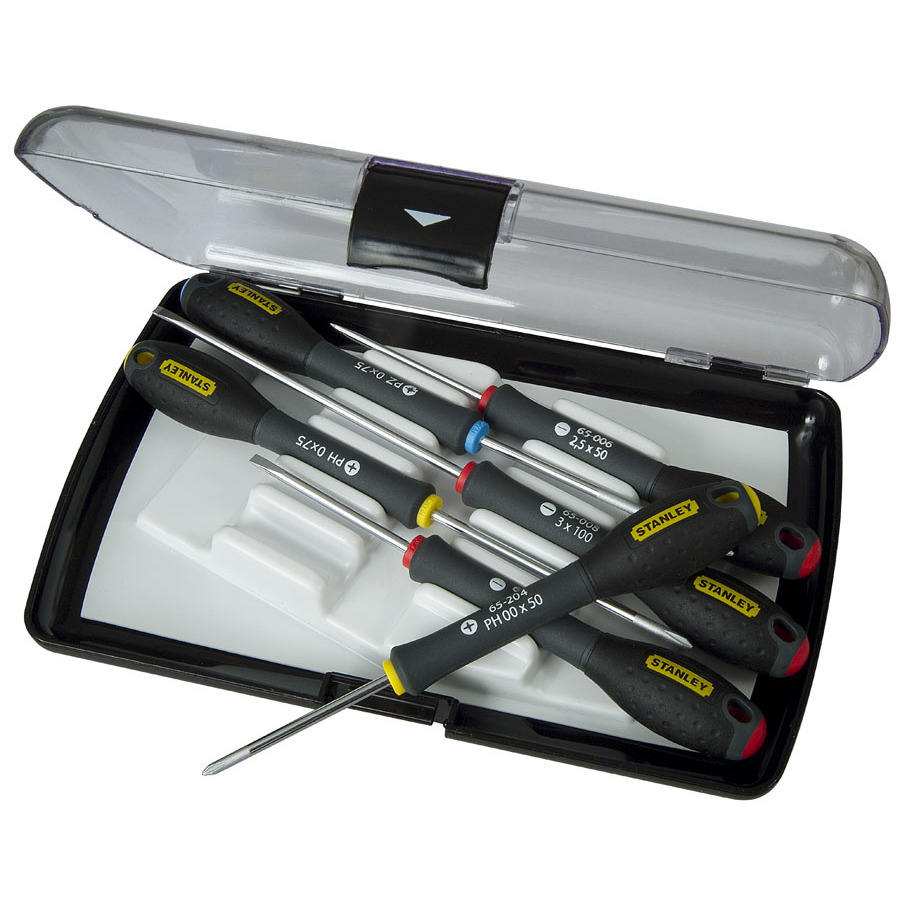 Juego de destornilladores de precisión Stanley de 6 piezas con mangos ergonómicos para reparación de electrónica